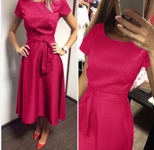 2018 Hot Sale Casual A-Line Dot Women Popular Dress Short Sleeve O-Neck Knee-Length Dress Summer Style Sashes Clothes Plus size
