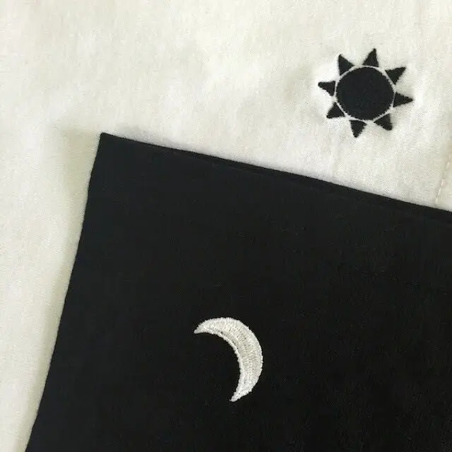 2018 New Summer Fashion Women Tshirt Harajuku style Day and Night Embroidery Female T-shirt short sleeved Sun Moon Tops camiseta