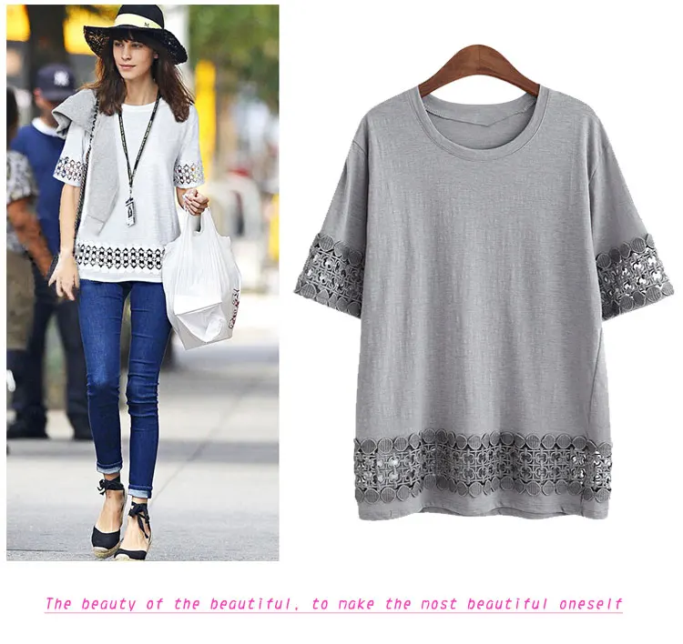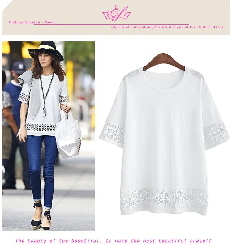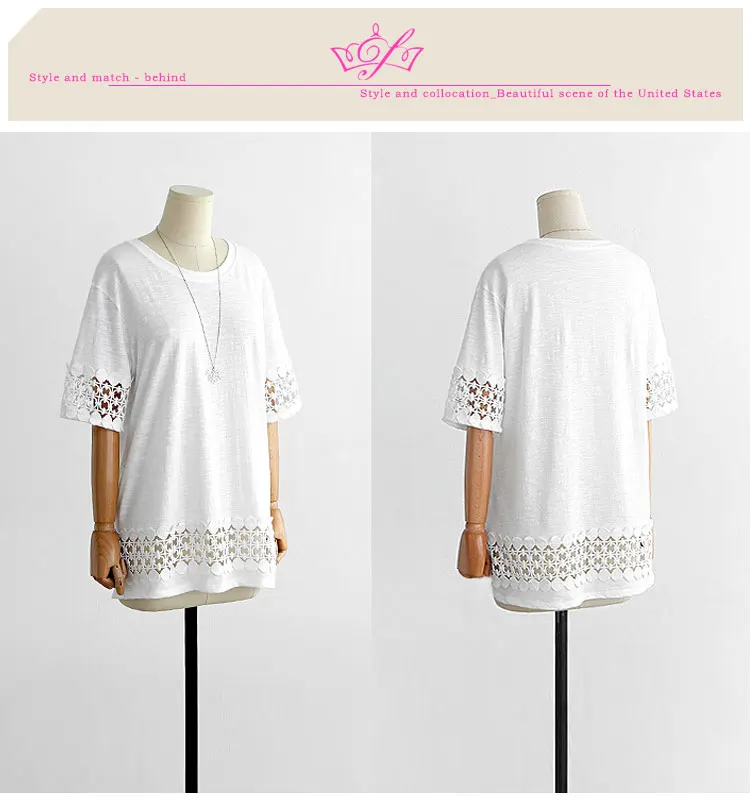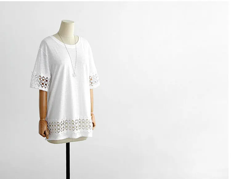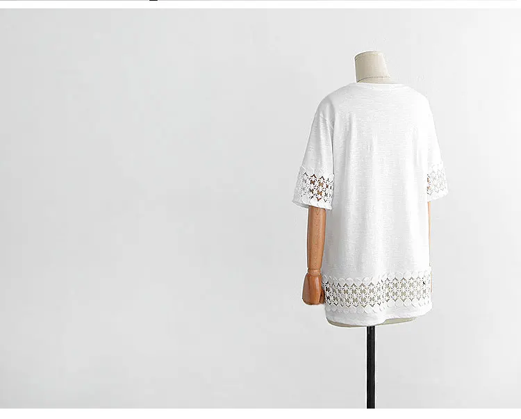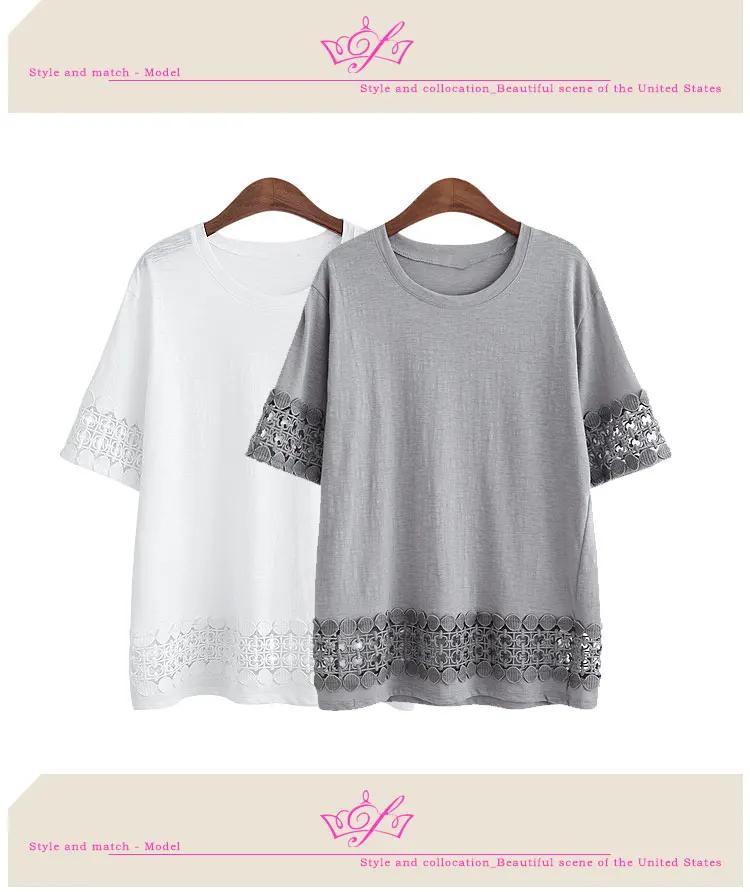2018 New Summer Women T-Shirt O-neck Casual Loose Lace Crochet Embroidery Hollow Out Tee Shirt Blusas Big Size