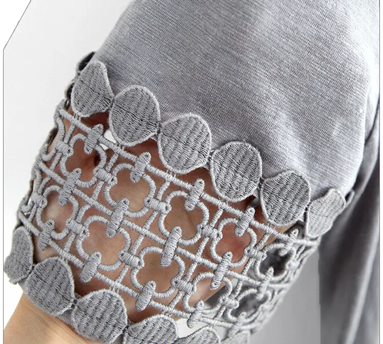 Item Type: Tops; Tops Type: Tees;Gender: Women; Pattern Type: Solid;Collar: O-Neck; Style: Casual;Brand Name: BELISNVOY; Decoration: Lace;Fabr…