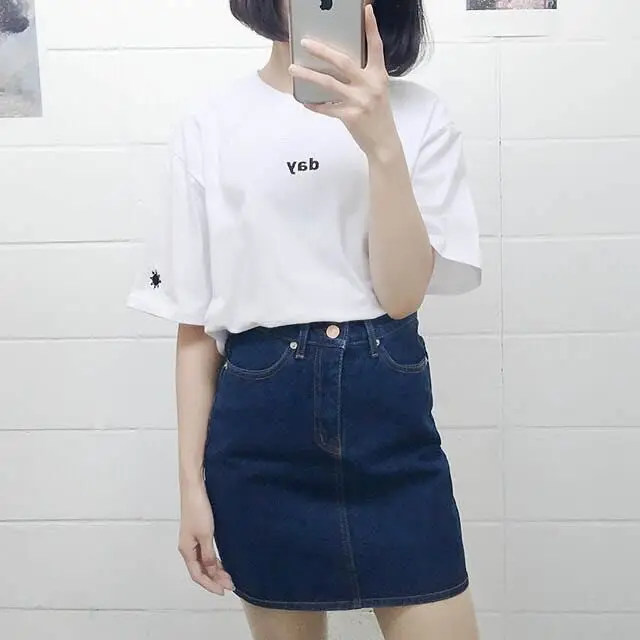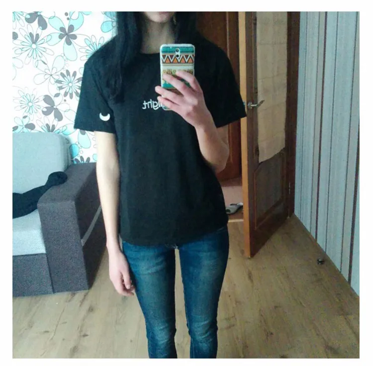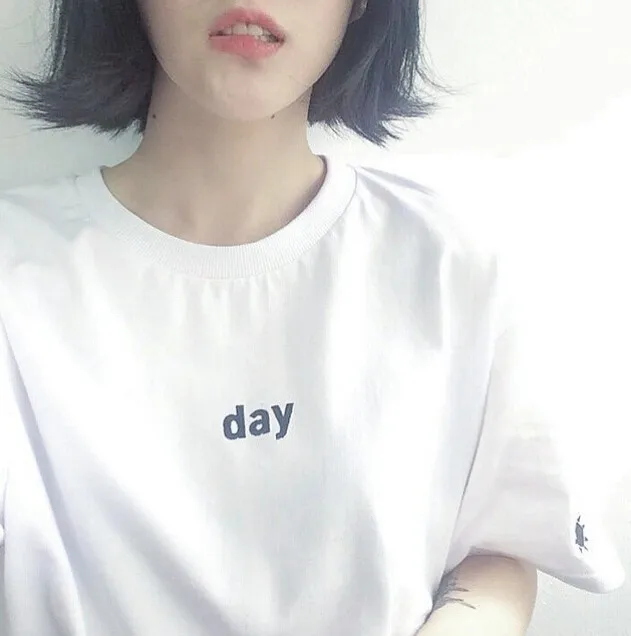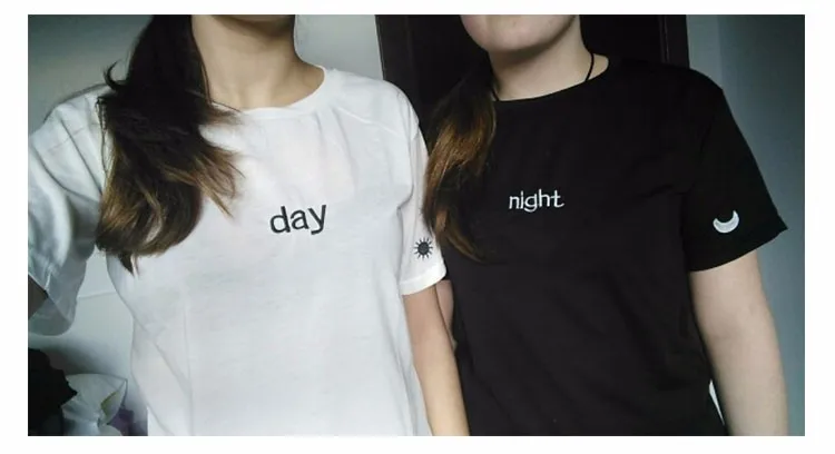 2018 Summer Harajuku Embroidery Letter Moon Night Day Sun Women T shirt Top Tees Black/White Sisters Short Sleeve O-neck