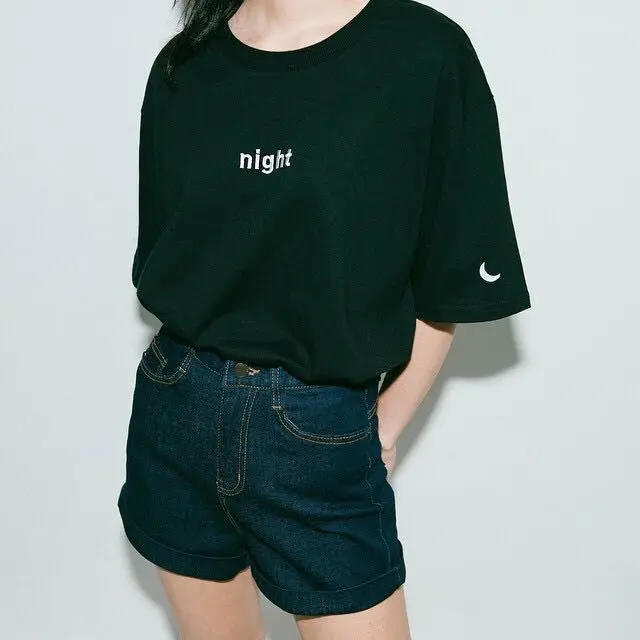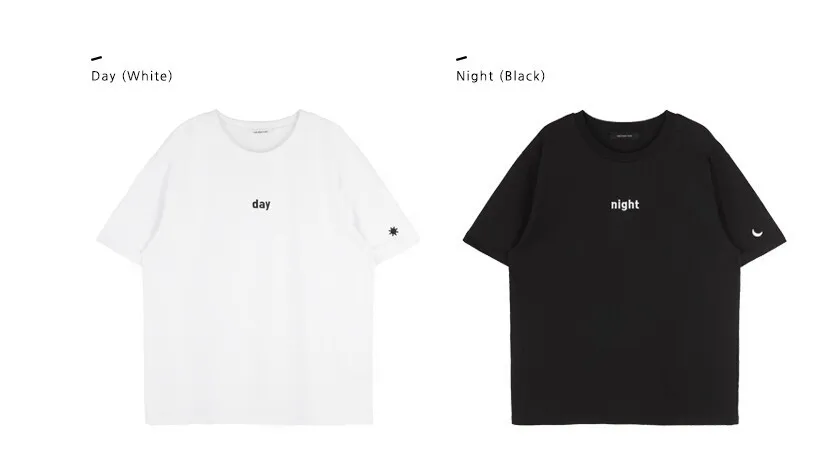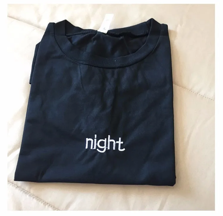 2018 Summer Harajuku Embroidery Letter Moon Night Day Sun Women T shirt Top Tees Black/White Sisters Short Sleeve O-neck