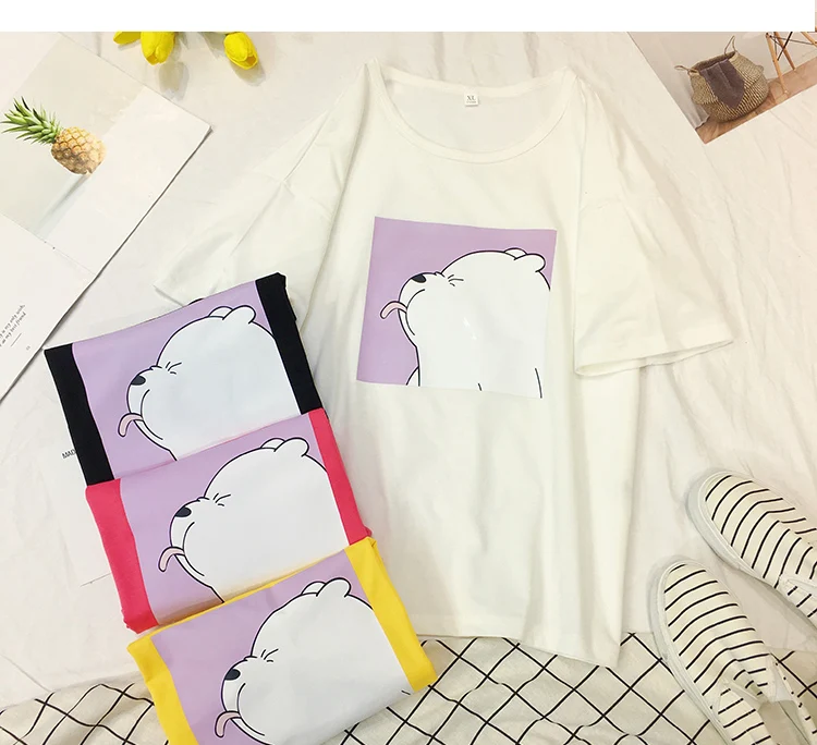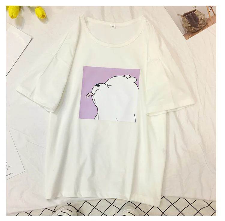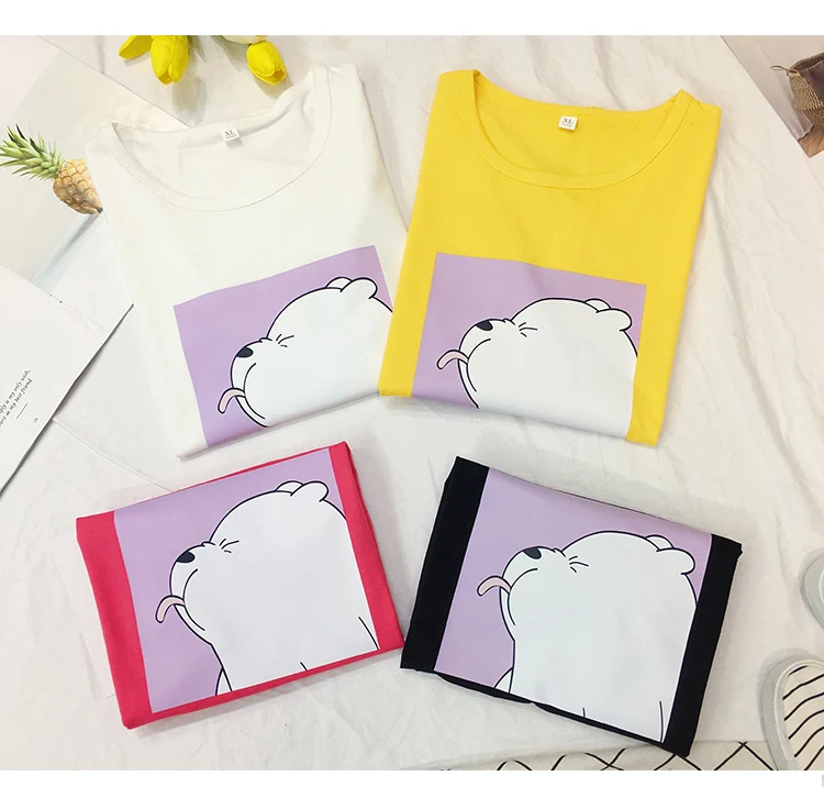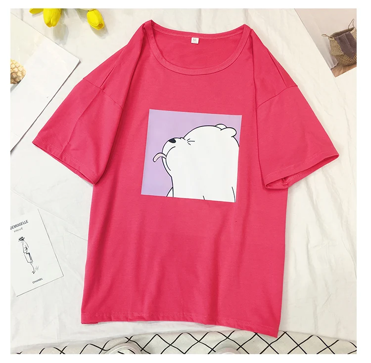 Gender: Women; Item Type: Tops;Tops Type: Tees; Collar: O-Neck;Model Number: 6546; Material: Polyester,Spandex;Decoration: None; Sleeve Length(cm): Short;Fabric Type: Broadcloth; Sleeve Style: Regular;Style: Preppy Style; Pattern Type: Print;Brand Name: DORAN; Clothing Length: Regular;Season: Spring summer tshirt; size: M L XL 2XL;women t-shirt: t-shirts women t shirts; Couple Tops: causal Cute Bear tshirt;color: black white yelloe rose red t shirt; t shirt women: harajuku t shirt;korean t-shirt: plus size tops; summer top: TShirts women;discount 1: follow doran get 2% off; discount 2: 2 pieces off 2%;