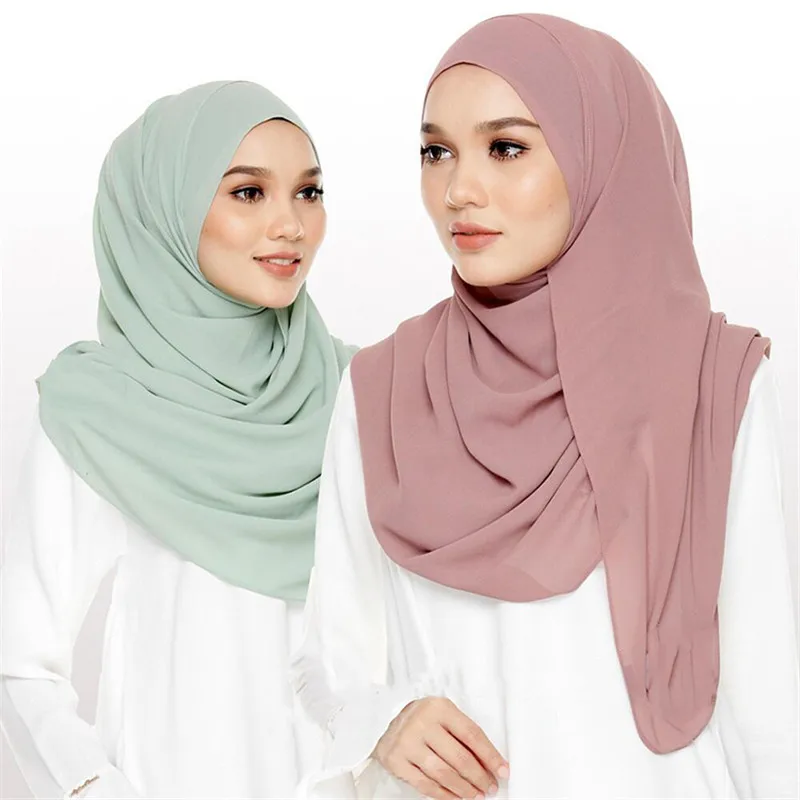 2020 Fashion Women Solid Chiffon Headscarf Ready To Wear Instant Hijab Scarf Muslim Shawl Islamic Hijabs Arab Wrap Head Scarves