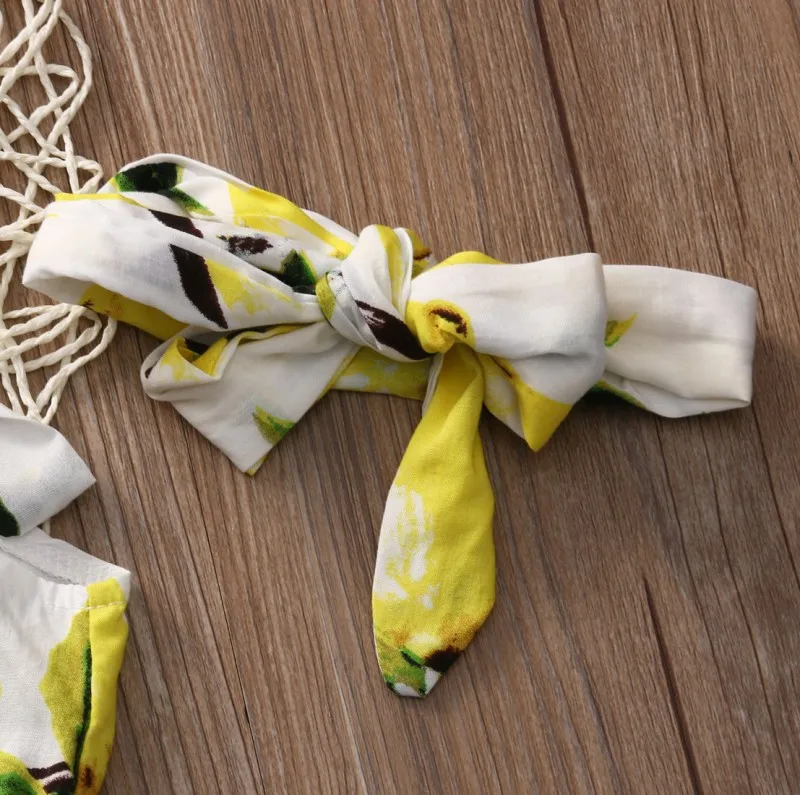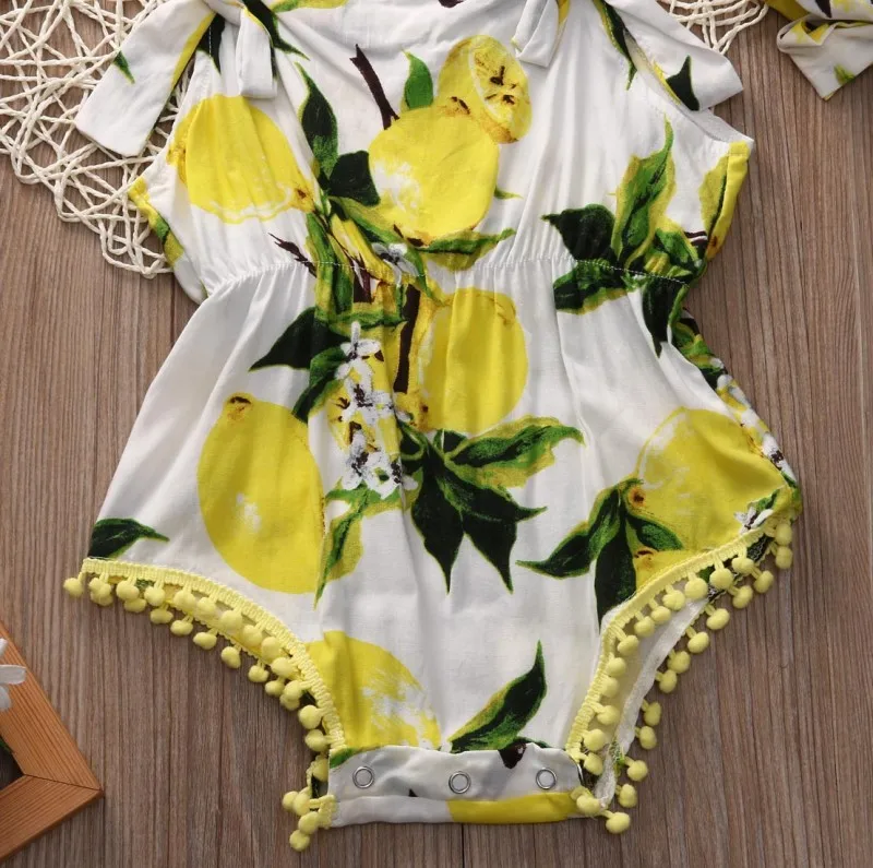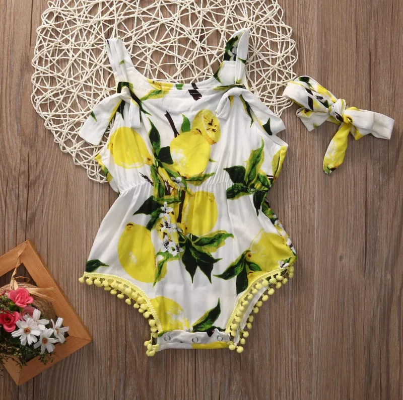 2Pcs/Set ! 2017 Newborn Baby Girl Romper Summer Sleeveless Backless Halter Sunsuit lemon Bebes Outfits Clothes