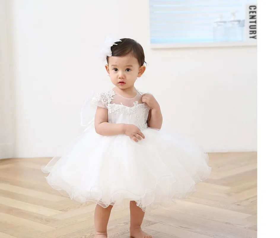 2PCS/set Girls 1 year Birthday Party Dresses Princess baby girls dress baby girls christening dresses Baptism Dress for newborn