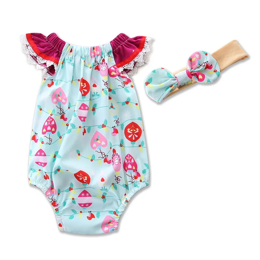 2Pcs/Set Newborn Baby Infant Girls Cotton Clothes Floral Romper Jumpsuit +Headband Sunsuit Clothes