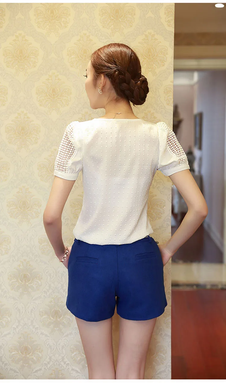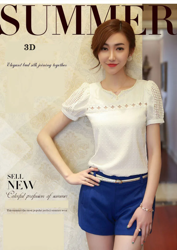 Gender: Women;Pattern Type: Solid;Brand Name: CHOODAN;Sleeve Length(cm): Short;Material: Acrylic,Nylon;Sleeve Style: Puff Sleeve;Decoration: Lace;Coll…