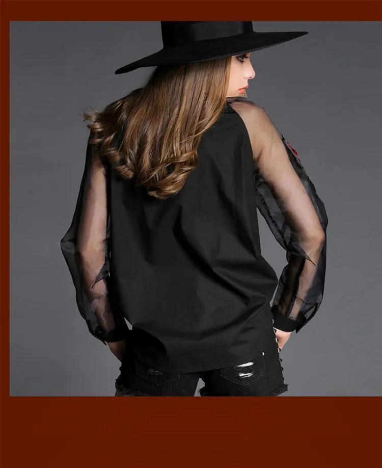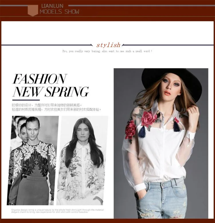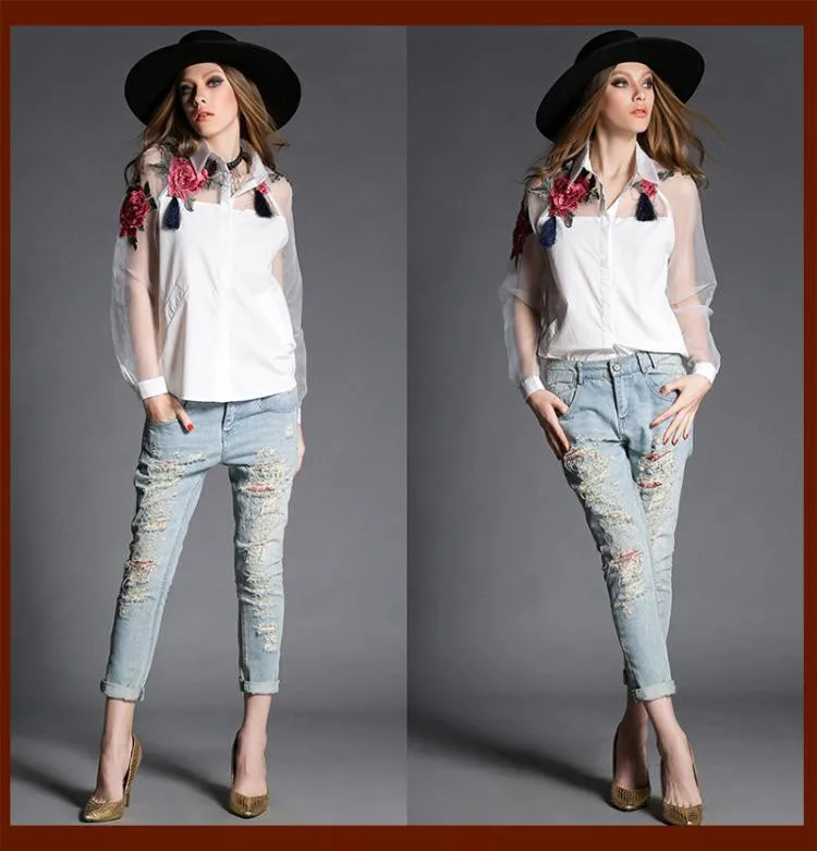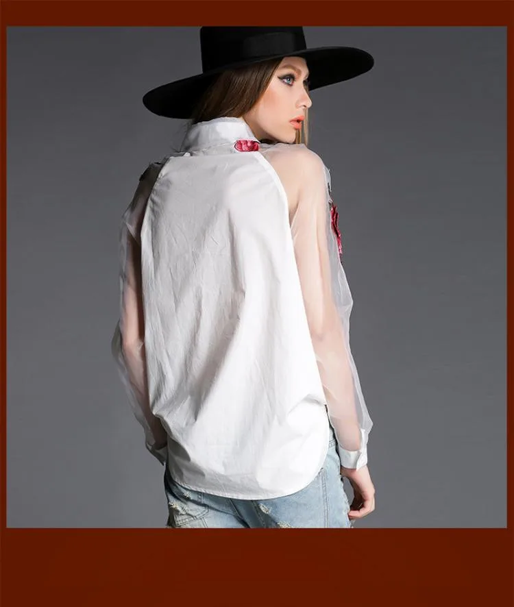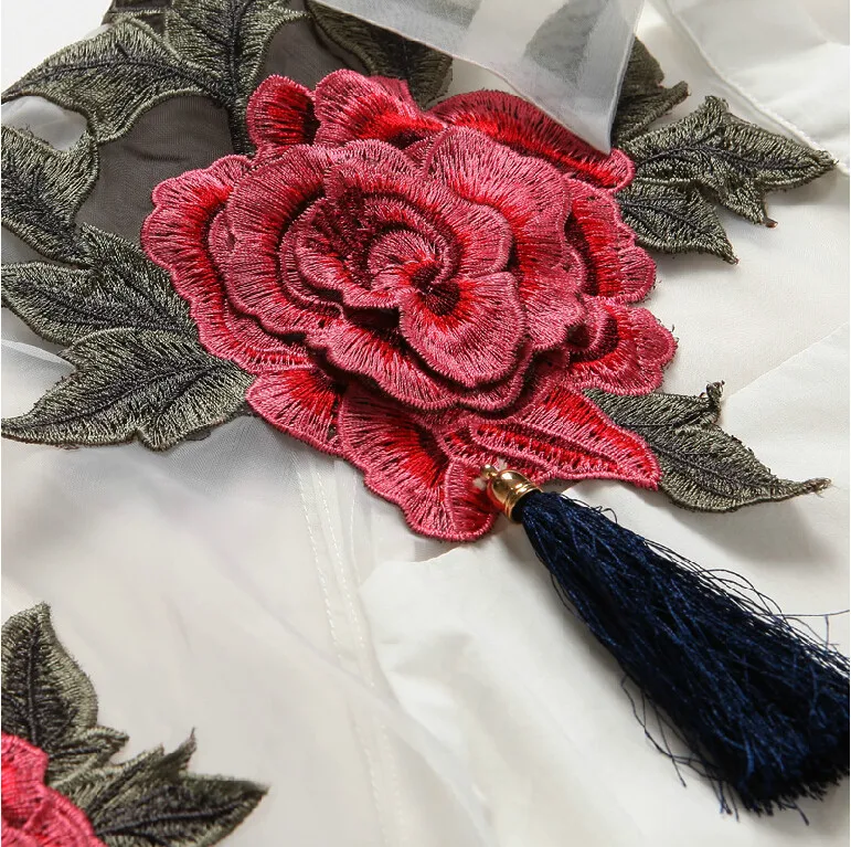 3D Flower Embroidery Blouses For Women 2017 Brand New Tops Summer Style Organza Patchwork Long Sleeve White Blouse Shirt Female