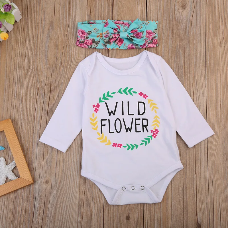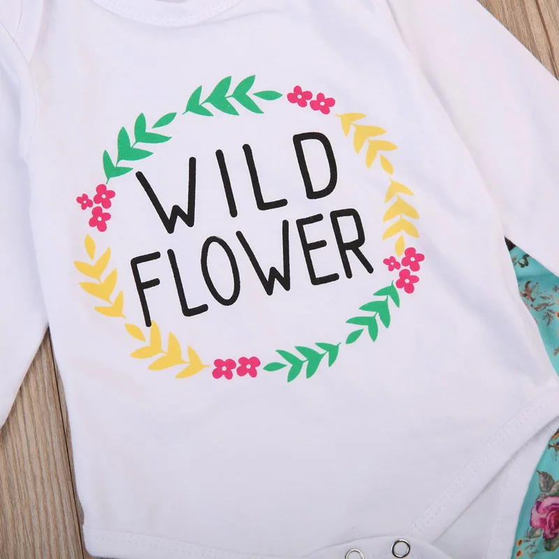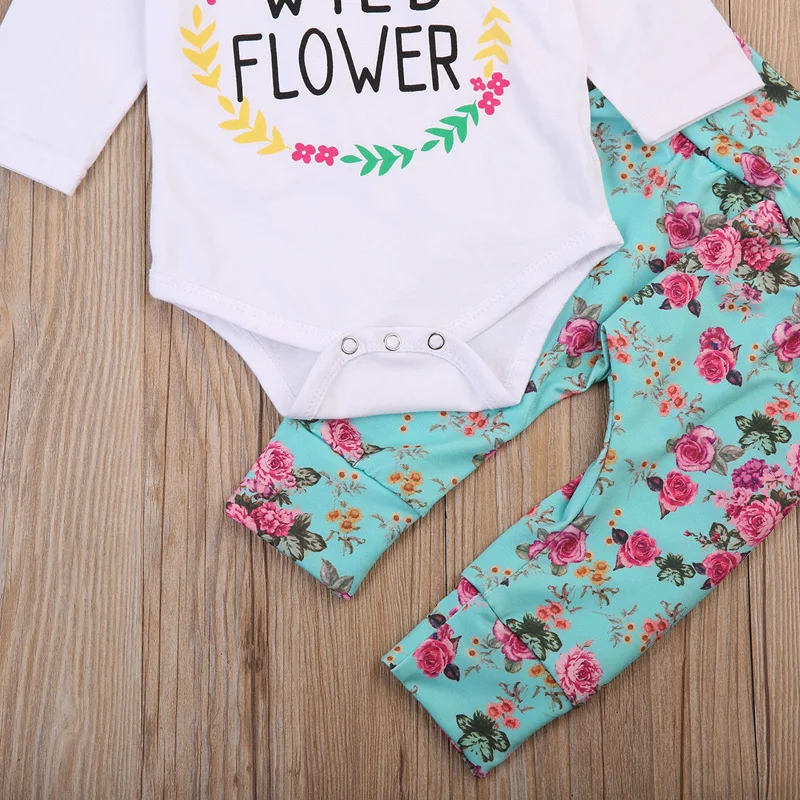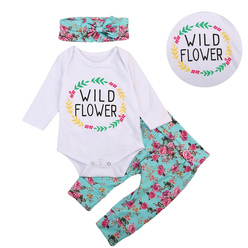 3PCS Newborn Baby Girl Clothes Long Sleeve Wold Flower Romper Tops+Floral Pant Legging Hat Outfit Children Kids Clothing Set