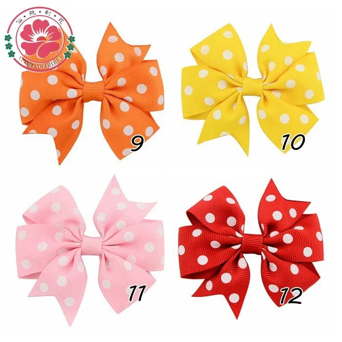 Product Name: ( 40 pcs/lot) 3 inch Polka Dot Grosgrain Ribbon Boutique Bows Baby Girls Bow With Clips Hairpins Hair Ornaments 592