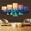 5 Pieces Sunset Blue Boats Seascape Modern Home Wall Decor Canvas Picture Art HD Print Painting On Canvas For Living Room Framed