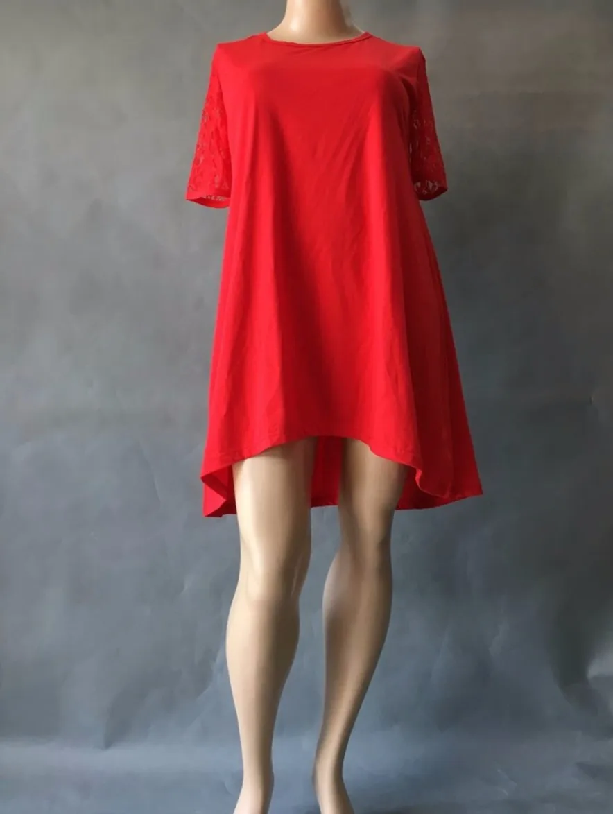 Gender: Women;Sleeve Length(cm): Short;Silhouette: A-Line;Style: Casual;Brand Name: renduermai;Season: Summer;Model Number: BC2632;Material: Polyester,Lace;Sleeve Style: Regular;Pattern Type: Solid;Dresses Length: Above Knee, Mini;Decoration: Lace;Neckline: O-Neck;Waistline: Natural;Size: XL XXL XXXL 4XL 5XL 6XL;Style: summer dress;Dress Pattern: solid Dress;Sleeve Length: short Sleeve;Place of Origin: China (Mainland);Packaging: OPP Bag/Color Bag;Shipping: Free shipping (Not including countries far from China);dress style: A-line dress;decoration: lace;