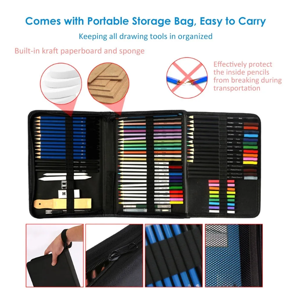 71/74Pcs Art Drawing Pencil Set Sketch Colored Pencil Set Professional Artist Painting Oil Pencil Stationery Sketch Art Supplies Description: N…