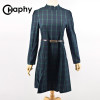 3.Description: A-Line Green Waist Belt Slim Plaid Blouse Dress