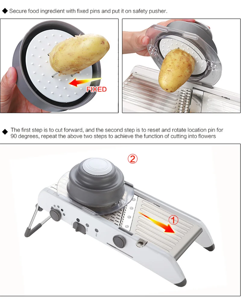 1.Different Kinds Of Cutting Tools - Our Vegetables Slicer features different types of stainless steel blades for Fruit And Vegetable Cut, slicer, Carrot Grater, Onion Chopper