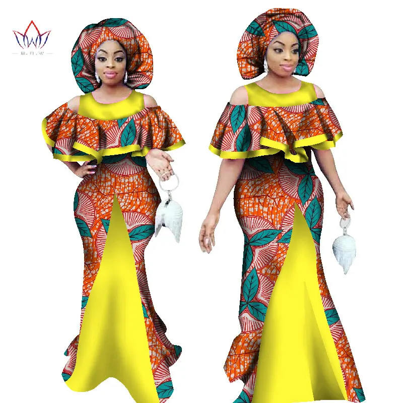 African Dresses for Women Sleeveless Mermaid Dresses Maxi Dress Party Dresses Bazin Riche Fashions African Clothe 6XL BRW WY1065
