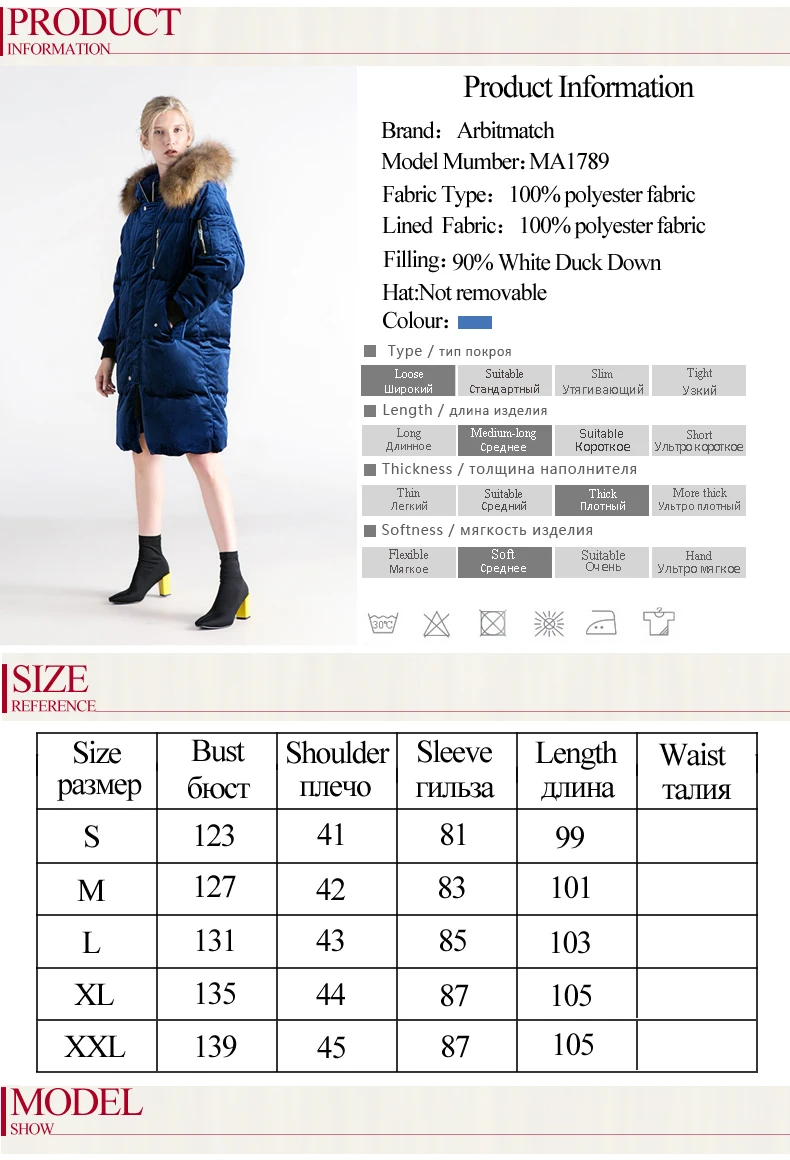 Arbitmatch Fashion Long Down Jacket Women Winter Natural Large Racoon Fur Hooded Down Parka Warm Thick Outwear Female Down Coat