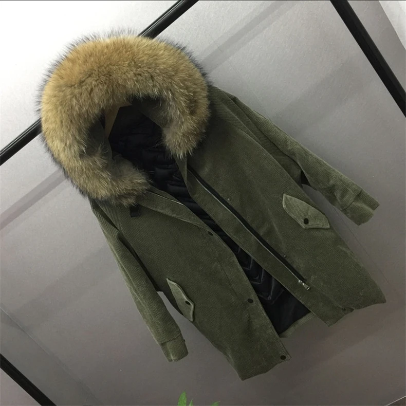 Arbitmatch Winter Down Jacket Women Natural Racoon Fur Collar Down Caot Hooded Warm Corduroy Outwear Female Thicker Ladies Parka