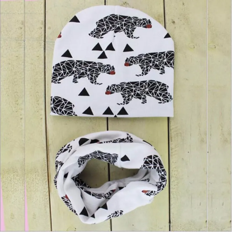 Autumn Winter Baby Girl Boy Hats Set Kids Toddler Warm Cotton Caps Scarf Set