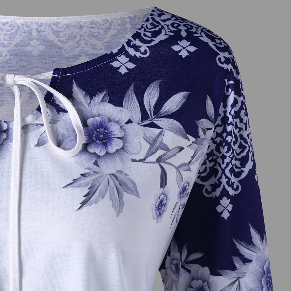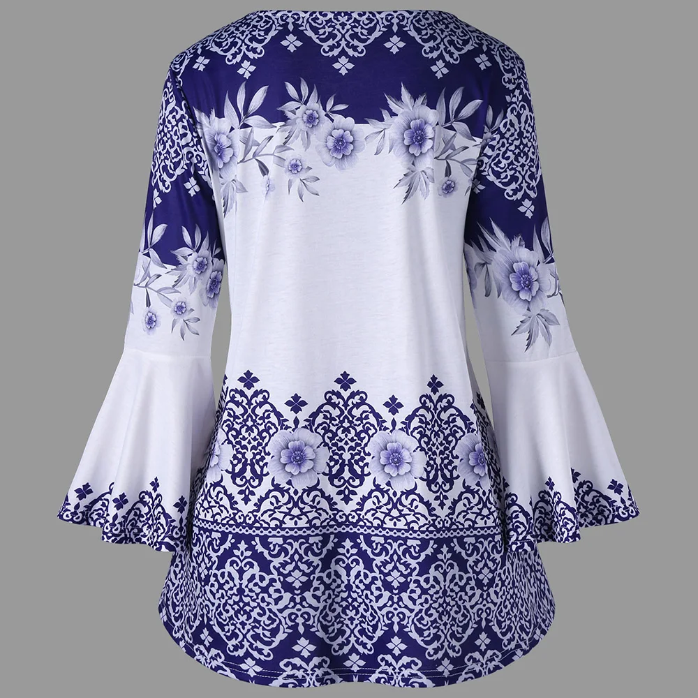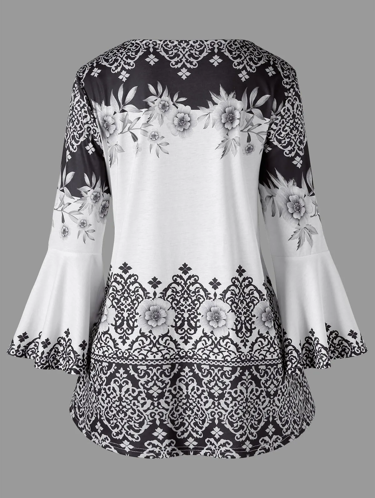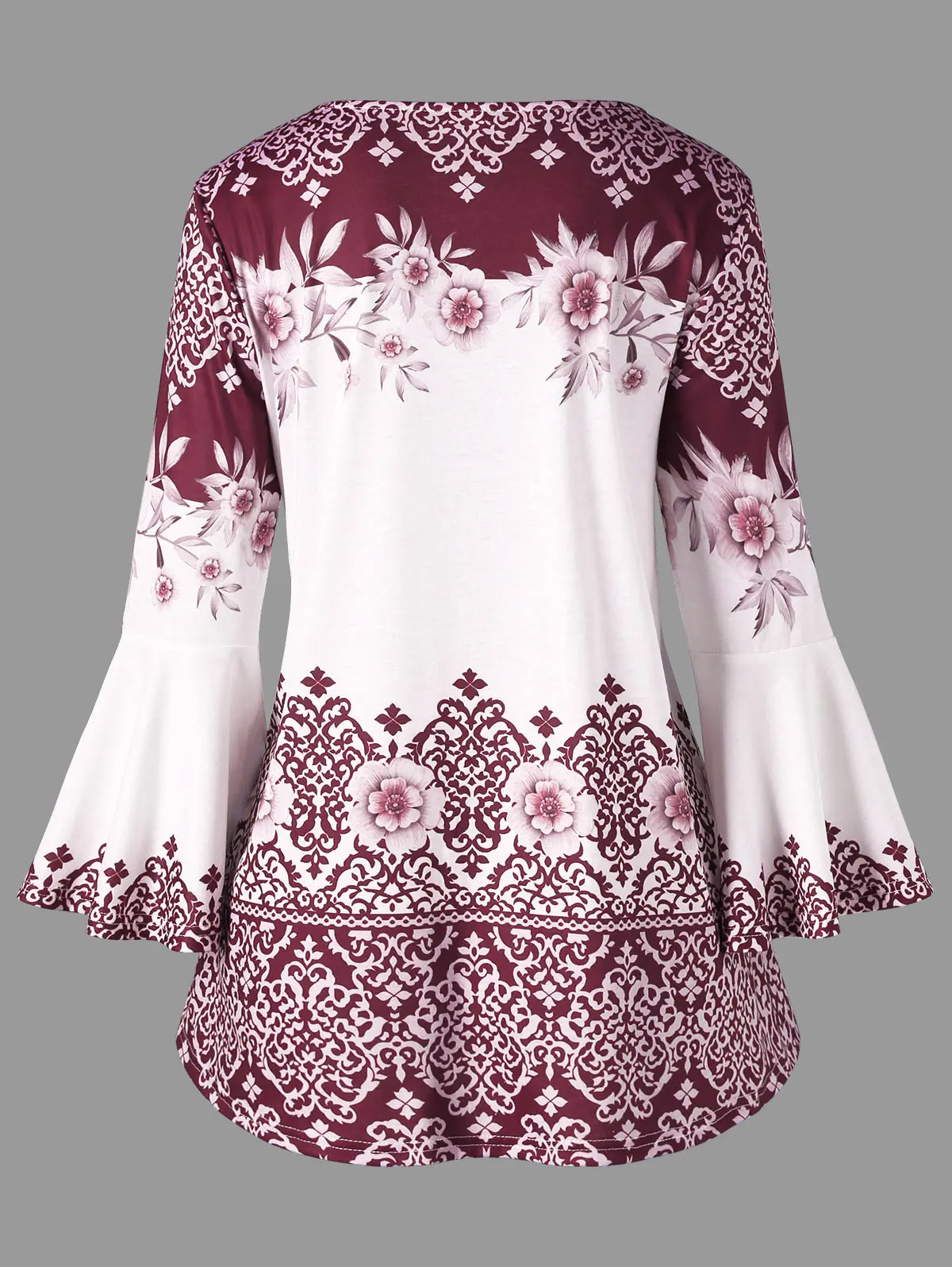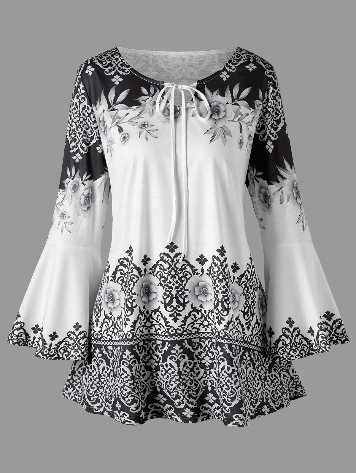 AZULINA Plus Size Print Keyhole T-Shirts Women T Shirts Causal Flare Sleeve Keyhole Neck T Shirt Ladies Top Big Size 5XL T-Shirt