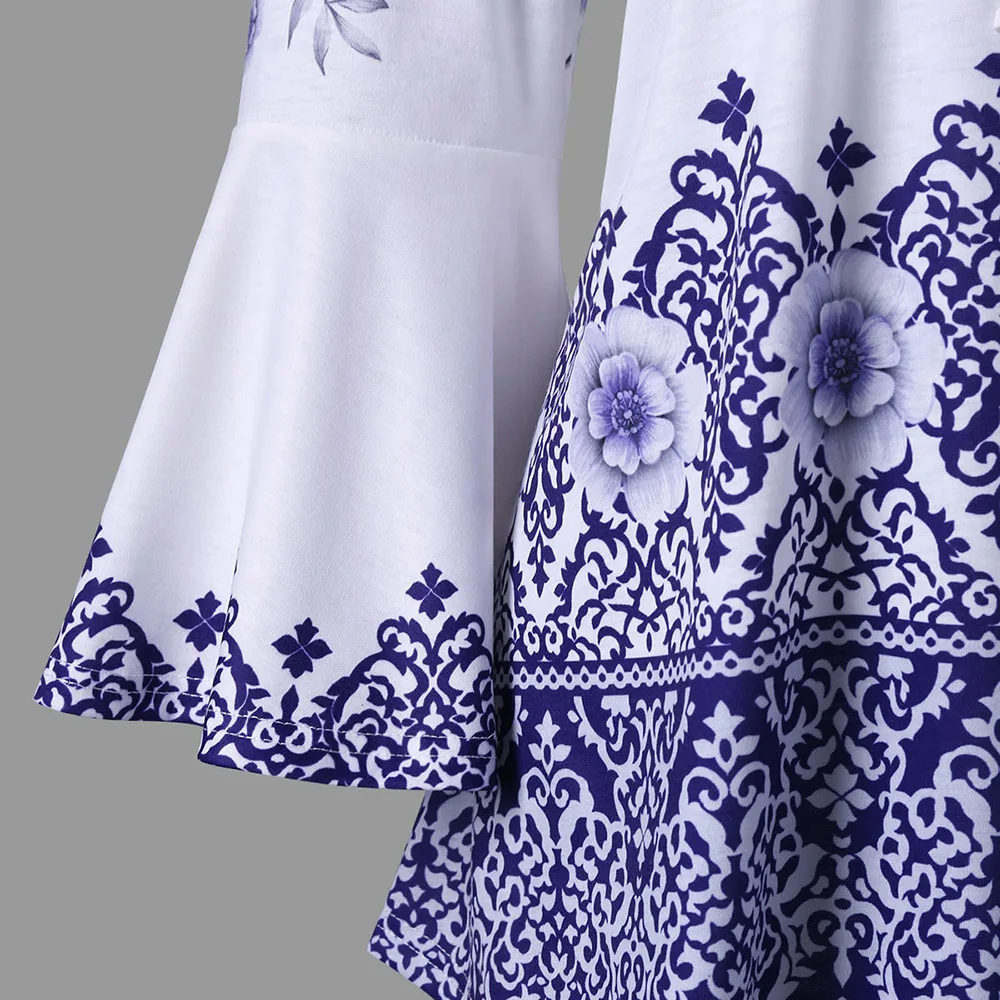 AZULINA Plus Size Print Keyhole T-Shirts Women T Shirts Causal Flare Sleeve Keyhole Neck T Shirt Ladies Top Big Size 5XL T-Shirt