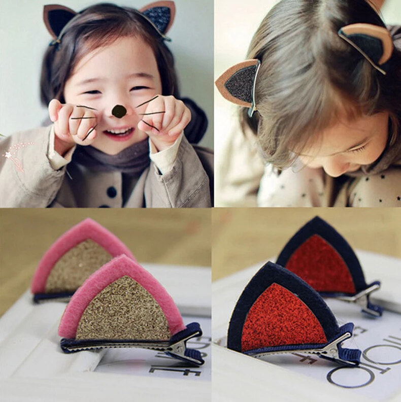 Kids Baby Grils Headwear Cute Princess Sequins Cat Ear barrettes Hair Clips Barrette Hairpins Baby Girl