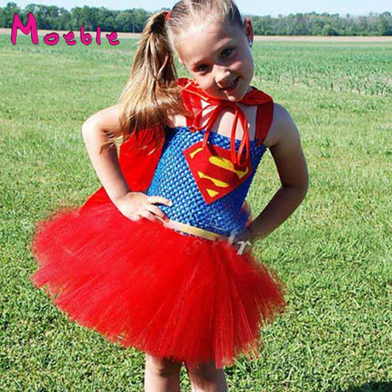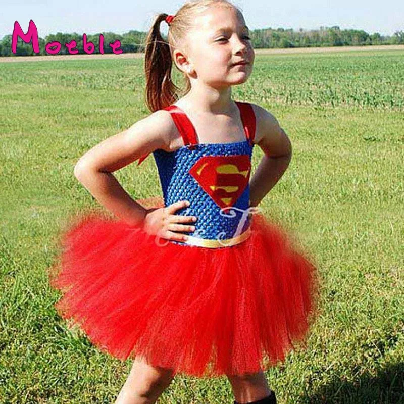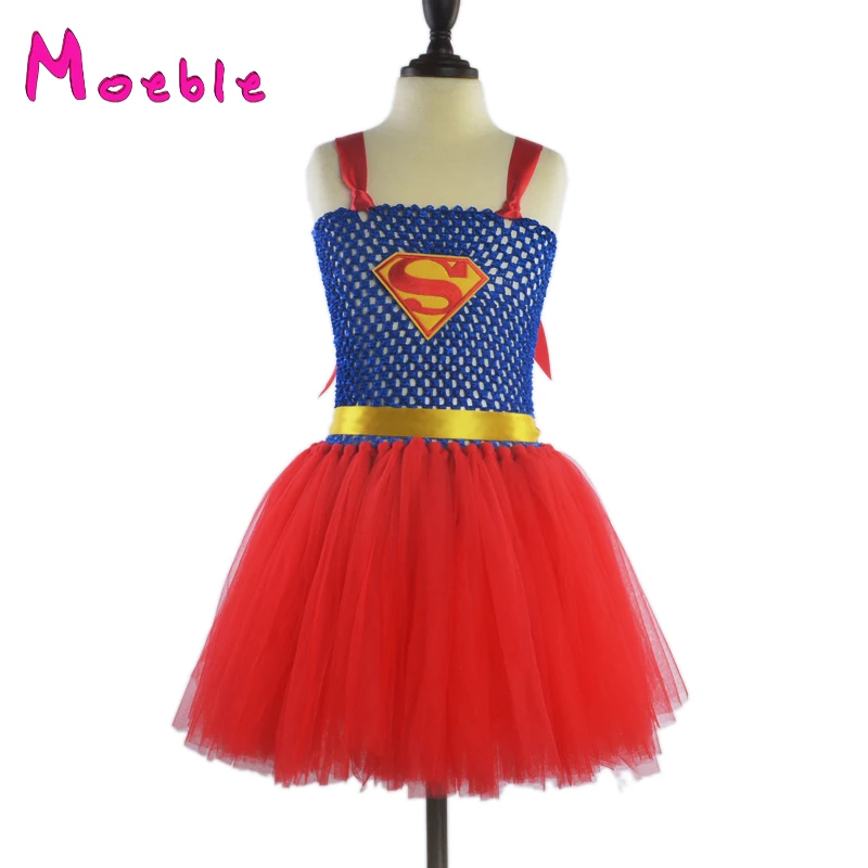 Baby Girl Superman Tutu Dress Children Girl Cosplay Superhero Tutu Dress For Birthday Halloween&Party Girl Fancy Clothes DT-1618