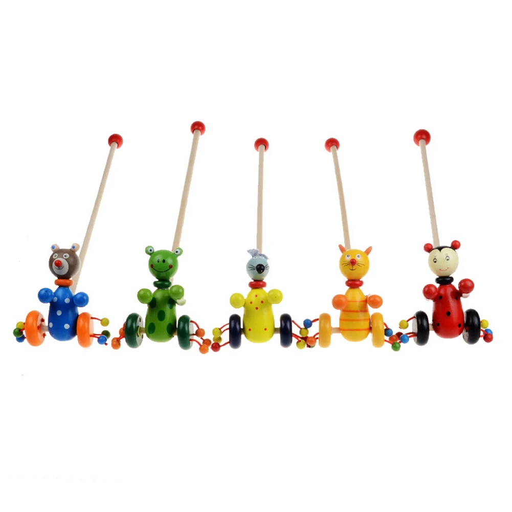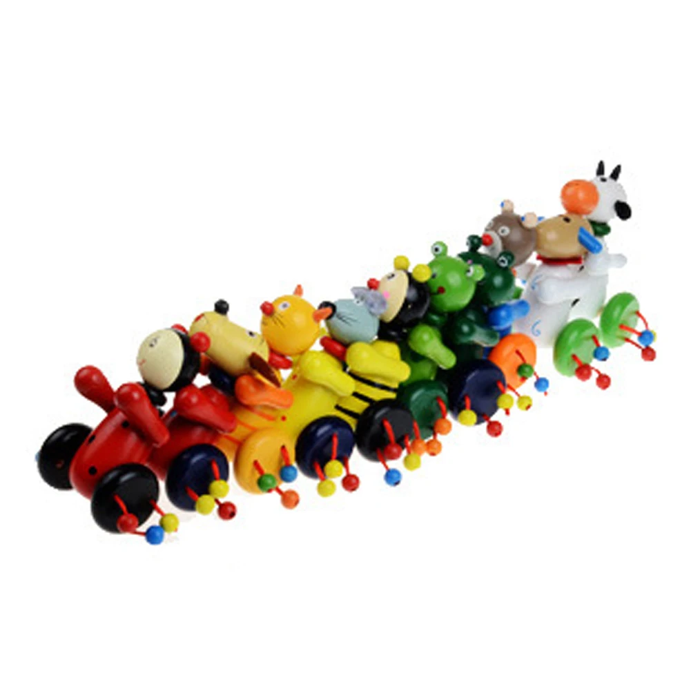 Baby Wooden Animals Cartoon Trolley Toys Montessori Intellectual Colorful Putting Toddler Blocks Trolley Kids Wood Toys