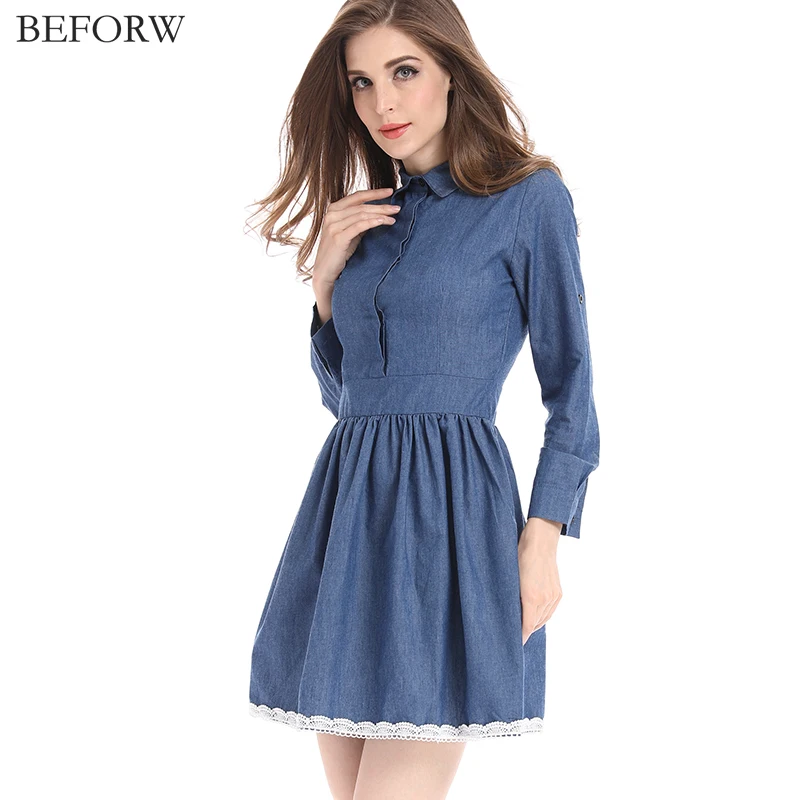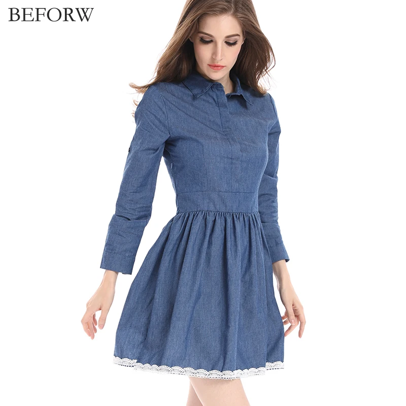 BEFORW Fashion Women Denim Dress Long Sleeve Casual Slim Dresses Autumn Winter Vintage Work Clothes For Women Vestidos