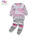Belababy Girls Clothing Sets New Summer Fashion Style Cartoon Kitten Printed T-Shirts+Net Veil Dress 2Pcs Girls Clothes Sets