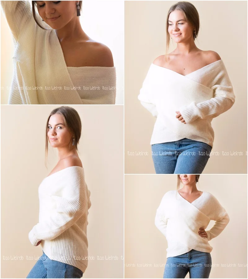 BerryGo Sexy V neck cross knitting winter sweater women Autumn pull knit casual jumper Fashion down sleeve pullover female 2017
