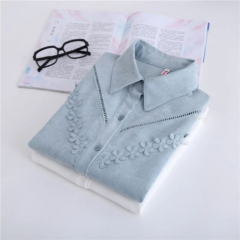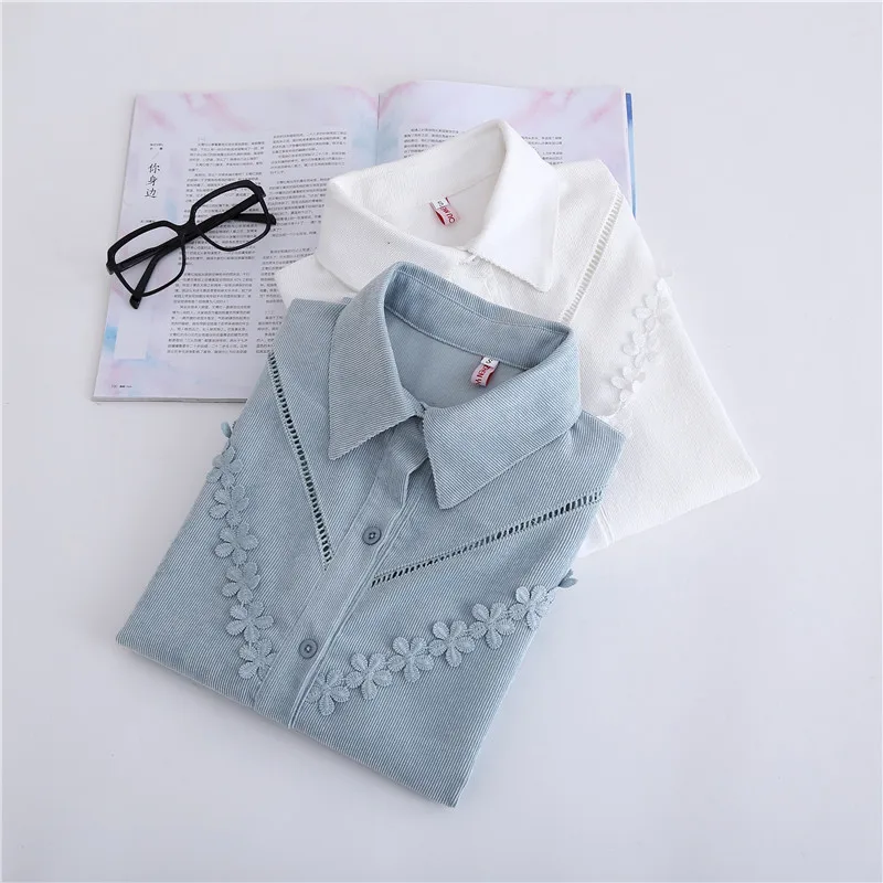Gender: Women;Brand Name: BIBOYAMALL;Sleeve Length(cm): Full;Pattern Type: Solid;Style: Casual;Decoration: Lace;Collar: Turn-down Collar;Fabric Type: …