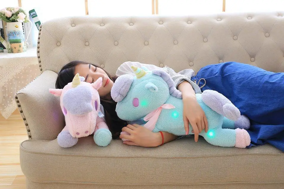 Big Luminous Pillow 55CM Unicorn Led Light Green Pink Unicorn Horse Plush Stuffed Animals Toys Girl Toy Birthday Christmas Gift