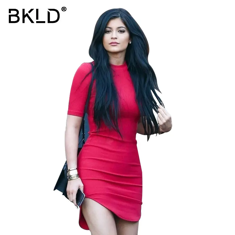 BKLD Sexy Sheath Women Causal Red Velvet Office Dress Crew Neck Half Sleeved Dress Elegant Bodycon Party Pencil Dresses Vestidos