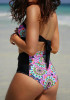 Black Floral Backless Halter Neck Tie Back 2-in-1 V-neck Sleeveless Swimwear
