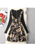 Black Floral Print Zipper Round Neck Sweet Midi Dress