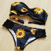 Black Flowers Lace Bandeau Print Two Piece Backless Bikini Swimwear