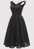 Black Lace Draped Backless Deep V-neck Elegant Party Midi Dress