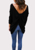 Black Plain Cross Back Irregular Round Neck Casual Pullover Sweater