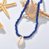 Blue and White Beaded Necklace with Puka Shell Pendant