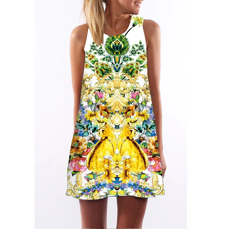 Bohemian Dress New Fashion 2017 Summer Style Women Dress Sleeveless O neck Vintage Dress Women's Beach Dress Vestido de festa