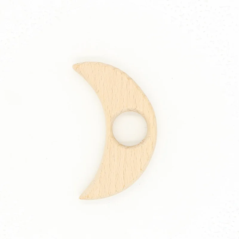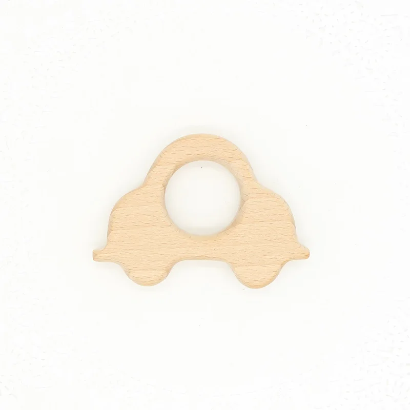 A wooden teether made of 100% natural beech wood is the ideal first toy for babies to grasp and chew. It is a unique gift for new parents and their new little ones.