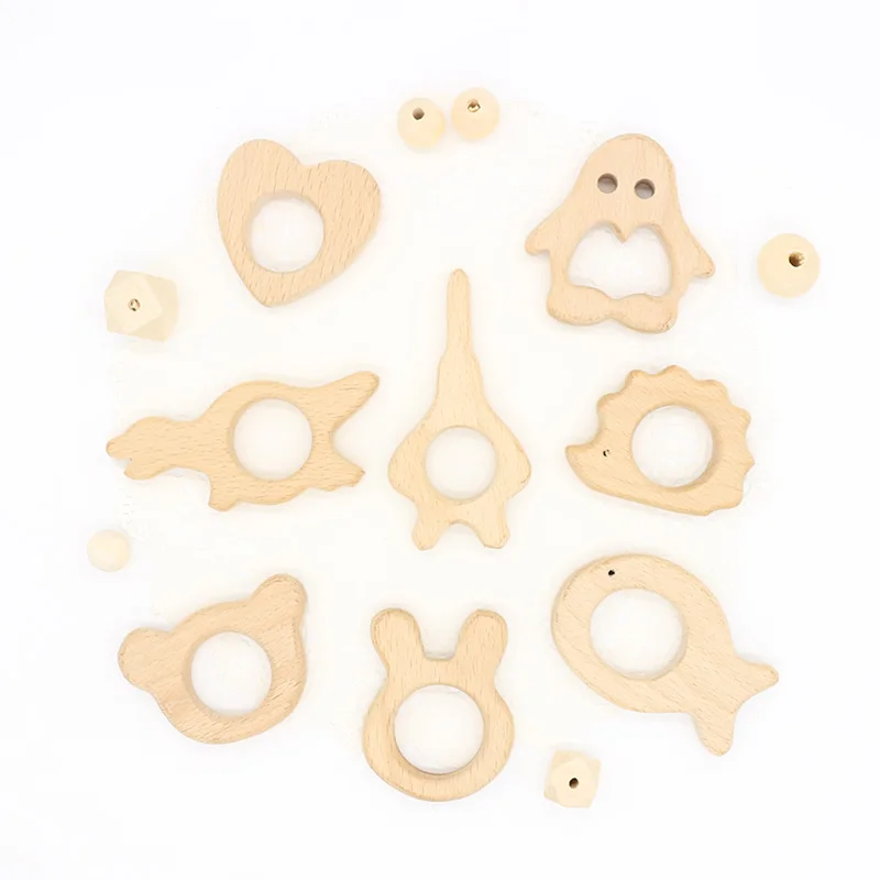 BPA FREE Natural Wood Teether Cartoon Animal Shape Wooden Baby Teether Toy Safe Newborn Kids Teething Toys Baby Shower Gift