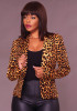 Brown Leopard Print Buttons Long Sleeve Turndown Collar Office Worker Blazer