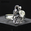 BUDONG 2017 Vintage Lotus Leaf Resizable Adjustable Silver Ring Fine Jewelry Retro Thailand 925 Sterling Silver Rings for Women