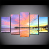 Canvas Prints Pictures Wall Art 5 Pieces Malibu Pier Beach At Sunset Poster Bridge Scenery Painting Modular Decor