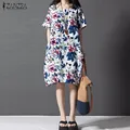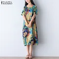 ZANZEA Women Vintage Print Dress 2017 Ladies O Neck Short Sleeve Splice Casual Loose Dress Mid-Calf Length Vestidos Plus SizeUSD 14.09/pieceWomen Vint…