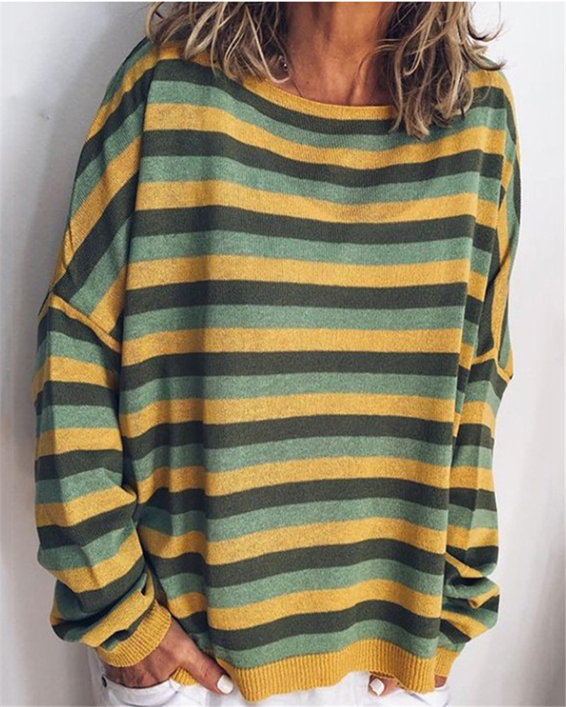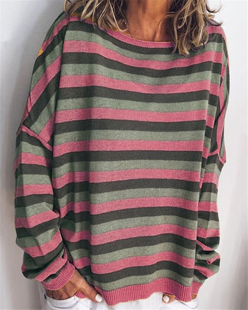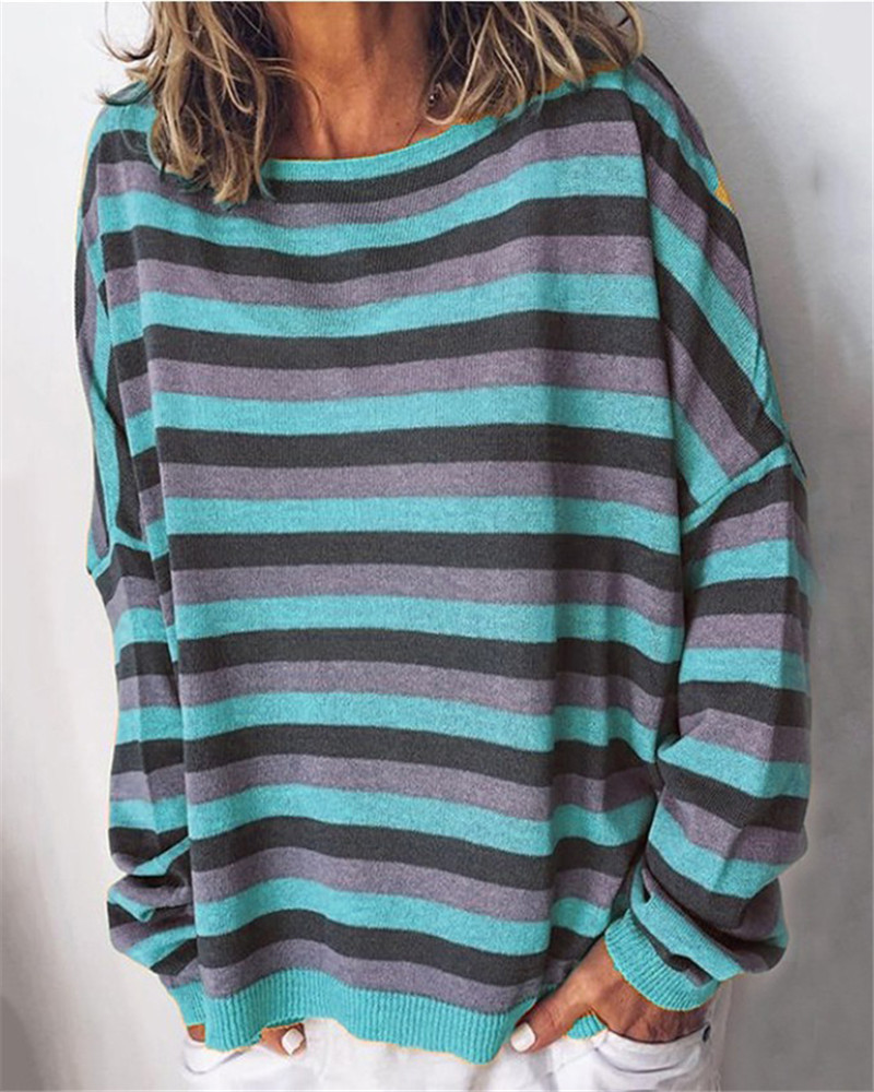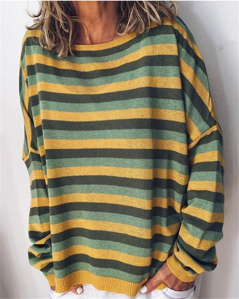 Casual Striped Crew Neck Long Sleeve Loose T-Shirt