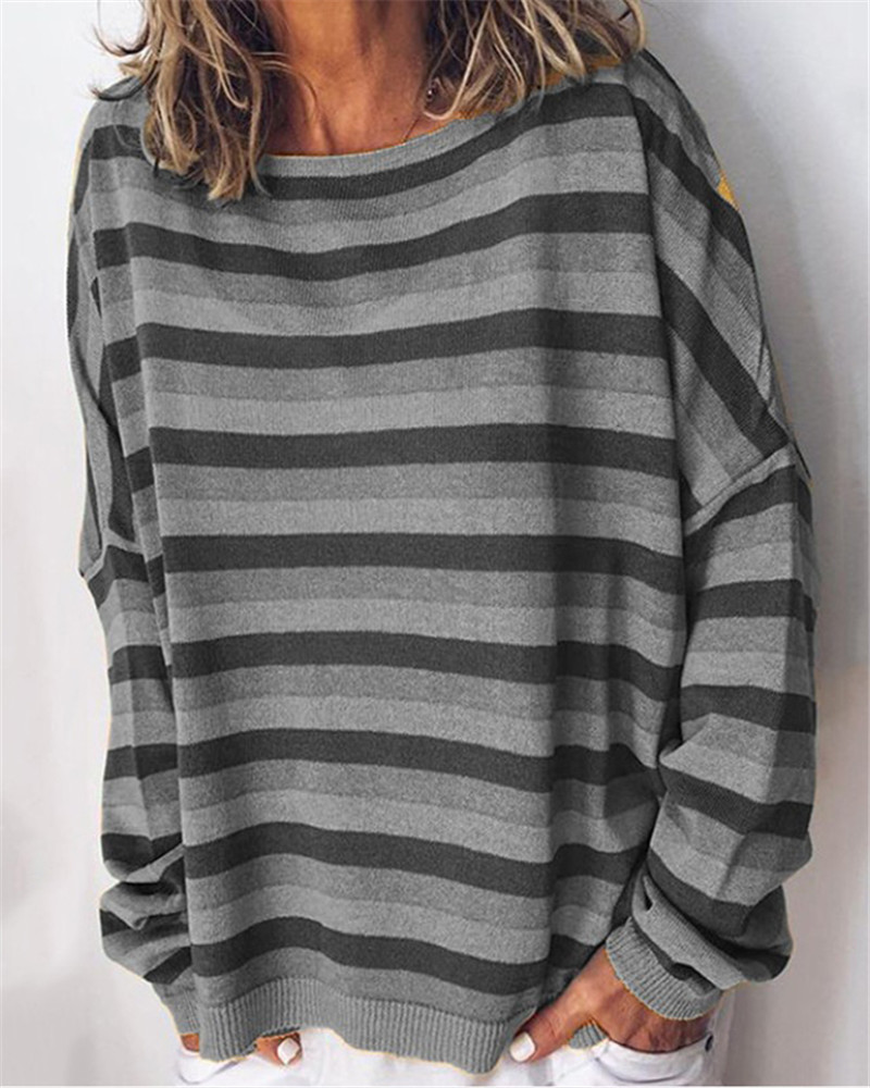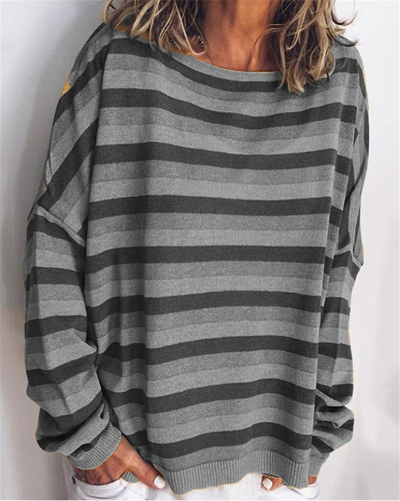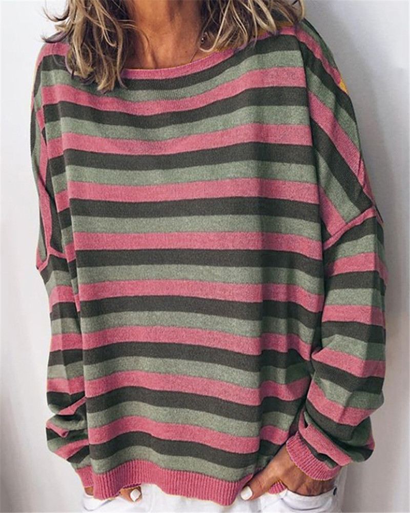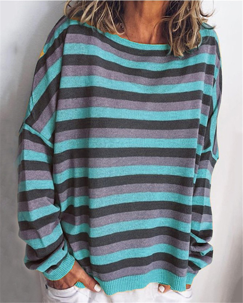Casual Striped Crew Neck Long Sleeve Loose T-Shirt